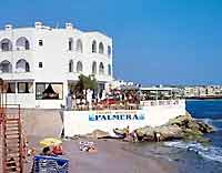 С 31 августа по 14 сентября 2008 года отдыхали в отеле ”Palmera Beach” в Херсониссосе (Крит). Остановив свой выбор на этом острове, я проштудировала немногочисленные, но оказавшиеся весьма полезными, отзывы в инете об отеле, пришла к выводу - это то, что мне нужно. В итоге я забронировала Пальмеру, о чем впоследствии ни разу не пожалела. Как это водится, гид забрасывал туристов по пути из аэропорта по их отелям, а я была в ужасе от того, в каких помойках-деревнях люди селились. Позже,на увиденном контрасте, оказавшись в своем отеле, я оценила расположение Пальмеры. Действительно, до пляжа подать рукой, все магазинчики, клубы и рестораны находятся в 5-10 минутах ходьбы, турагентство рядом. В общем, в Херсониссосе была одна проблема - проблема выбора: куда сходить, на какие экскурсии съездить, ибо соблазнов было много. По приезде расселились во втором корпусе, который находится недалеко от пляжа (около 20 метров), что было очень удобно. Номер без особых изысков, телевизор, кондиционер за дополнительную плату (7 евро в день), сейф в номере. Относительно маленькой душевой, на которую жаловался в своем отзыве некий господин, ничего не могу сказать, мне было вполне нормально, хотя я далеко не гном. Вообще, с отелем было связано 2 негативных момента: хренова туча комаров (кто поедет в Пальмеру – запасайтесь фумитоксом или какой убийственной мазью) и безумная слышимость. Но последнее мне не особо и досаждало, так как Херсониссос - молодежный тусовочный городок, и потому народ гарцует на дискачах круглосуточно, пьет, впрочем, тоже. Отсюда и вытекающие последствия. Лично я выбирала место, чтобы можно было развлечься, так что круглосуточный тусняк был оборотной стороной отдыха в столь шумном месте. Однако не всем людям в летах это соседство с бурной ночной жизнью может понравиться, потому отель в частности, и Херсониссос в целом, больше подходит для молодежи и активных живчиков, нежели для пожилых людей, тяготеющих к комфорту и спокойствию. Питание было вполне пристойное. В количественном соотношении предлагаемое меню уступает питанию, скажем, в Турции или Египте. Но зато все исключительно вкусно по сравнению с вышеозначенными странами. Очень радовали 4 вида мороженого, подаваемого каждый вечер. Подавали вкусное мясо, рыбу, салаты. Пожалуй, несколько недоставало фруктов: давали в основном яблоки и апельсины, и то где-то через день. Но оказалось, что фрукты на Крите очень дешевые, и мы частенько покупали персики и нектарины в супермаркете. Пляж у отеля был неплох, тем не менее, начитавшись в инете советов про Стар Бич, поперлись туда, и были разочарованы. Пляж песчаный, небольшой, и народу на нем - до энтой матери. Единственное достоинство – обилие водных развлекаловок. В общем, для нас ничего примечательного. Так что с удовольствием ходили на свой пляж, и, купив циновочки по 2 евро, с удовольствием отдавались загару, впрочем, морю тоже. Советую приобрести резиновые тапки для купания (8 евро в соседнем супермаркете), так как в море до фига морских ежей, а раны после их иголок не заживают весьма продолжительное время. Что удивило в Херсониссосе, так это отсутствие турфирм на каждом шагу, где можно купить экскурсии. В нашей округе таковых обнаружилось 3 штуки (причем 1 турфирма располагалась аккурат рядом с нашим корпусом). С организованными экскурсиями съездили на Санторини 
