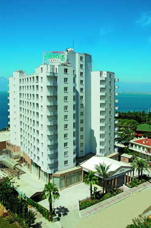 отдыхали семьей из троих взрослых в августе 2009. отель прекрасно расположен и это главный его плюс! отель находится на высоком скалистом березу самого города Анталия(заметьте не пригорода а города) в районе лара.. это делает возможным самостоятельное и безопасное перемещение по всему городу , достопремичательностям, магазинамне для туристов а для обычных турков с иным порядком цен и в любое врямя суток!сам отель относительно ухоженный но очень маленький.. почти из всех номеров видно море. номера довольно просторные и несильно обтрнпанной мебелью.. все что надо есть и телефизор и фен и холодильник. правда кондиционер общий но с индливидуальной регулировкой. вбаре рядом с рецепшеном бесплатный интернет.. олин ресторан, в котором всегда есть места, бар у бассейна в котором по непонятной причине на 7 день нашего пребывания перенесли обеды, так же есть бар у басейна.. бассйн не большой но в нем нет народу, есть одна водная горка , пологая и извилистая как уже говорила. отельнаходится на высоком скалистом берегу поэтому от площадки у бассейна есть спуск к пляжу платформе,. это 3 лестнечный пролета. далее лифт на 5 человек примерно пять этажей, дальше еще 5 лестнечных пролета.. и вы попадаете на пирс, на котором лежаки , зонтики и матрацы, на пляжу есть туалет. душ и бар, но за наше 10 дневное пребывание работал только 1 раз. что печально. но всегда можно принести все из бара у бассейна. пирс не большой но мест всегда много, он оборудован лестницей а так же площадкой для прыжков, это горе для не умеющих плавать и раздолье для умеющих. сразу глубина, скалы, тишина. даже недоносятся звуки от анимации у бассена и никаких детских криков.. благодать.. о сервисе.-- на рецепшине только 1 товарищ говорит на русском и при возникновенгии проблем резко его забывает.. мы конечно же сталкнулись с проблемами.. мы апокупали дабл плюс один.. и вот по приезду нам дали шикарный маленький носер с видом на море самый центровой но в нем была только одна двухспальная кровать.. после криков нам принеслои расклодушкуи сделали из двухспальной трехспальную т.к.. в номере просто небыло места разместить все нормально.. но на следующее утро нам дали шикарный номер просто огромный так же с видом на море и с нормальным колличеством кроватий, диваном и еще гостинной.. , убираются хорошо, но на пляжу не хасто так что можно заметить окурки на пирсе, сломанный замок в женском туалете на пляжу, и т.д. о еде--- выбор очень не венлик, конечно никто голождным не уйдет но все же.. из фруктов, дыни, арбузы. сливы и обрикосы и никаких персиков и мандарин(((, официанты довольно медленны, напитки надо заккказывать.. поэтому приход сразу закажите а потом уже выбирайте еду.. при всем небоельшом выборе готявят очень прилично у них довольно молодой шеф-повар, который лично следит что пользуется спросом у публики и это дает результаты. на удтивление вкусные торты для турции. самое приятное это музыка в ресторане и у бассейна у них звучит БАХ!!! и Элла фмджеральд!!! странное сичетание , но мне по душе.. впревые такое встречаю!! особенности.--- отель переполнен, но не пляжными туристами а месными приехавшими на выходные или по делам европейцы, поэтому у бассейна и в море народу почти нет.. в основном украинцы и немножко немцев, все те кто отдыхают.. на море человек 30-40 не больше.)), в отеле почти каждый день на площадке у басс