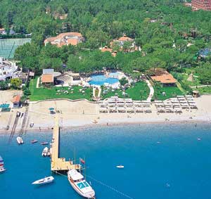 Честно говоря, мы в этот отель не собирались. Наши друзья, с которыми мы ездили, в прошлом году уже были в Турции и при выборе отеля руководствовались своими прошлогодними впечатлениями, а также желанием показать нам их неподражаемый отель. Но когда мы прилетели милые девочки из Одеон тур сообщили нам о замене отеля, ссылаясь на то, что в том отеле в настоящий момент нет такого количества мест. Нас было 9 человек. Я особо по этому поводу не расстроилась, т.к. в Турции была первый раз и ни в том, ни в другом отеле отметиться еще не успела. Ладно, теперь об отеле. Расположен он Бельдиби. По мне, так это большая деревня! Поэтому за ворота отеля я выходила редко: или на экскурсию, или на дискотеку. Сам отель позиционирует семейный отдых с детьми. В отеле в основном одни немцы. Для меня это проблемой не было, т.к. во-первых, у нас была большая компания, и мы всегда знали, чем себя занять; а во-вторых, отсутствие в отели большого количества наших соотечественников это очень положительный момент. Не хочу никого обидеть, но иногда в другой стране бывает очень стыдно за нашу высококультурную нацию. В отели нас встретила русская девушка Марина, которая и сопровождала нас весь наш отдых. Очень милая и отзывчивая. Помогала нам всегда и везде. В отеле, в принципе, была еще одна русская «помощница», но мы даже не знали, как ее зовут. Со всеми нашими проблемами мы обращались к Марине. Правда, проблем у нас там и не было! Т.к. мы прилетели утром, наши номера еще готовы не были, кроме одного, куда мы и свалили все наши вещи. Марина нас провела по всему отелю, показала, где что есть. Территория отеля большая и очень зеленая. Много цветов, деревья с апельсинами и лимонами. Все очень аккуратно и мило. Даже есть петух и 2 курочки! На территории 2 бассейна: в одном глубина везде одинаковая (по-моему, 1,70 м), а другой большой бассейн, где глубина до 3 м. Да, кстати, еще есть отдельно бассейн с горками. Море очень чистое. Лежаков на пляже полно. Вообщем места всем хватит Что касается еды. Есть один ресторан со шведским столом и пара баров. Кормят на убой! Правда, моим друзьям не особо нравился сладкий стол, но я к сладкому отношусь спокойно, тем боле, что количество фруктов все с лихвой компенсировало. По поводу номеров. Номера нормальные, я не могу сказать, что они были шикарные, но всегда чистые и убранные! Кстати о персонале. Персонал потрясающий! Никаких претензий к ним нет. Всегда очень услужливые и обходительные. Создавалось такое впечатление, что они получают удовольствие от своей работы! И не только бармены, но и все остальные служащие этого отеля. Что еще рассказать про территорию… Ах да, забыла рассказать про турецкую баню. Это отельная песня! Баня частная, поэтому в стоимость путевки входит только посещение самой бани, а вот массаж, маски и все остальное – это за отдельную плату. Но цены приемлемые. Друзья, побывав в прошлый свой приезд в бане в городе, сначала отказывались туда идти, но их все-таки уговорили, о чем они ни разу не пожалели! Я оценила все прелести этой бани во второй день нашего пребывания. Могу сказать, что я вообще-то баню не люблю. Но оказывается я просто не была в турецкой! Это чудо! Еще на территории отеля есть пара магазинчиков со всем необходимым и с украшениями (очень красивые серебряные изделия), парикмахерская. Есть корт. Ракетки взять стоит не дорого, нужно внес